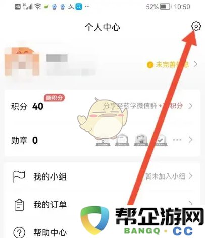 2、来到个人中心,点击右上角的设置按钮。
